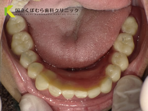 施術内容:右下1 左下1 4 5 6 7欠損部に対して右下5 4 左下3 をアタッチメントとしたコーヌステレスコープ義歯で修復